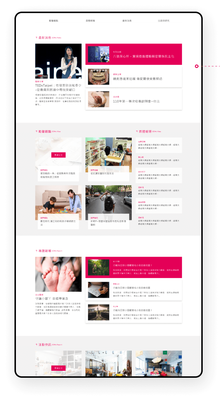 在網頁的內容規劃上,各版位的內容皆以圖片為主、文字為輔的形式編排,讓瀏覽者一進入網站就被圖片所吸引。而也因為整個網頁大部分區塊為圖片,這些圖片都是很好的CTA(行動呼籲),當瀏覽者對其有興趣時,將能大幅降低網頁的跳出率,並增加瀏覽者對品牌的了解。