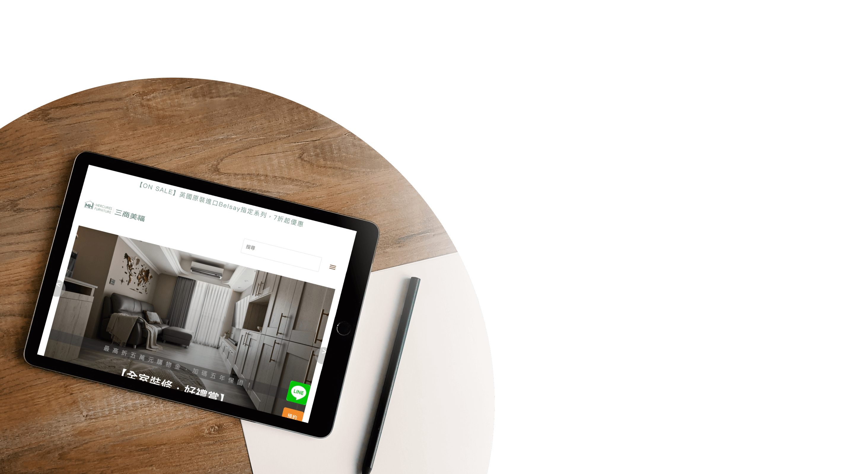 為協助三商美福的客戶快速找到相對應居家區域的作品,鵠崙設計利用下拉選單細分居家區域,並依照使用者閱讀習慣的改變,設立「影音專區」將繁雜的文字能以影片之形式呈現,以及利用側邊CTA按鈕方便使用者立即諮詢及預約。