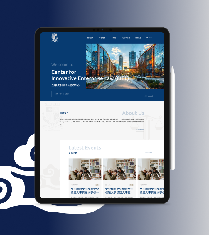 以「法制創新與國際學術交流」為核心,透過清晰架構與專業視覺語言,整合研究成果、論壇活動與跨域議題,強化資訊可讀性與學術權威感,並以簡潔動線提升使用者瀏覽效率,呈現研究中心的國際連結與前瞻性定位。