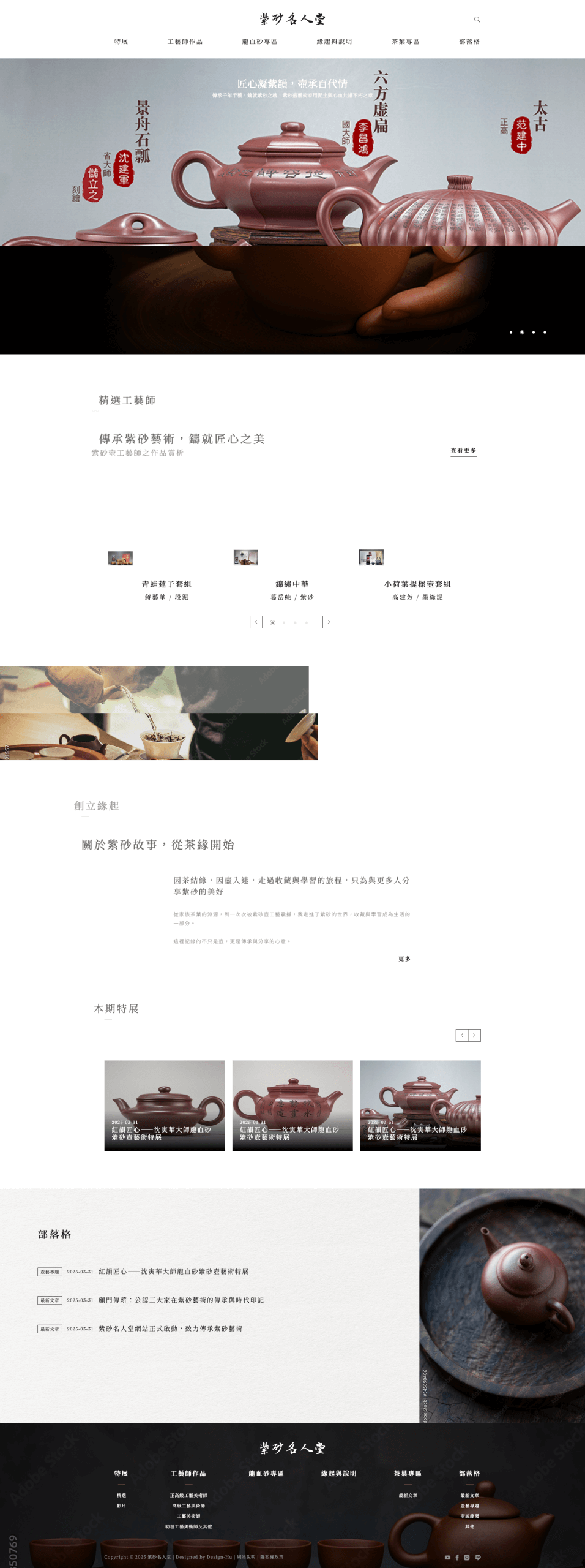 網站設計亦應呼應其「質感/沉穩/傳統美學」:典雅、沉穩、帶文化氛圍 — 背景、配色與排版不宜過於花俏炫麗,而應以素雅/自然為主 (例如米色、深灰、陶土色、木質調…),讓壺器作品本身與其細膩紋理/材質特色成為視覺焦點。強調作品/圖片展示品質 — 紫砂壺很多為手工與泥料細節講究,網站應提供高解析圖片、大圖展示、細節放大 (壺身、壺底印章、泥質紋理、配件、壺型…),讓觀眾能仔細鑑賞。尊重「工藝 + 時代感 + 文化感」— 透過穩重字體、適當留白、版面結構分明 (作品、說明、背景、故事),營造「博物館/展覽館」氛圍,而不是一般電商商店那種「商品販售」感。