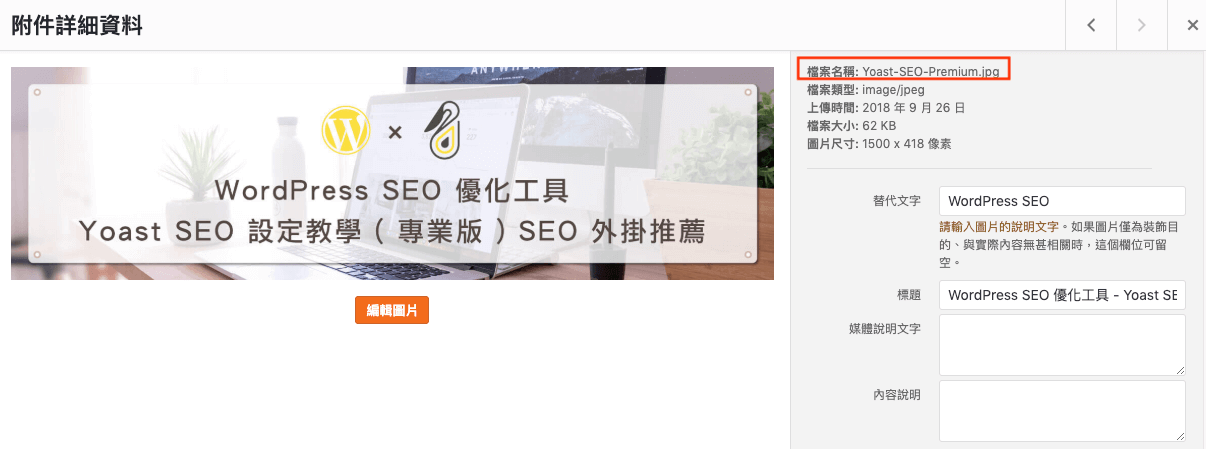 如果可以,附件命名應該包含網頁內容的焦點關鍵字。